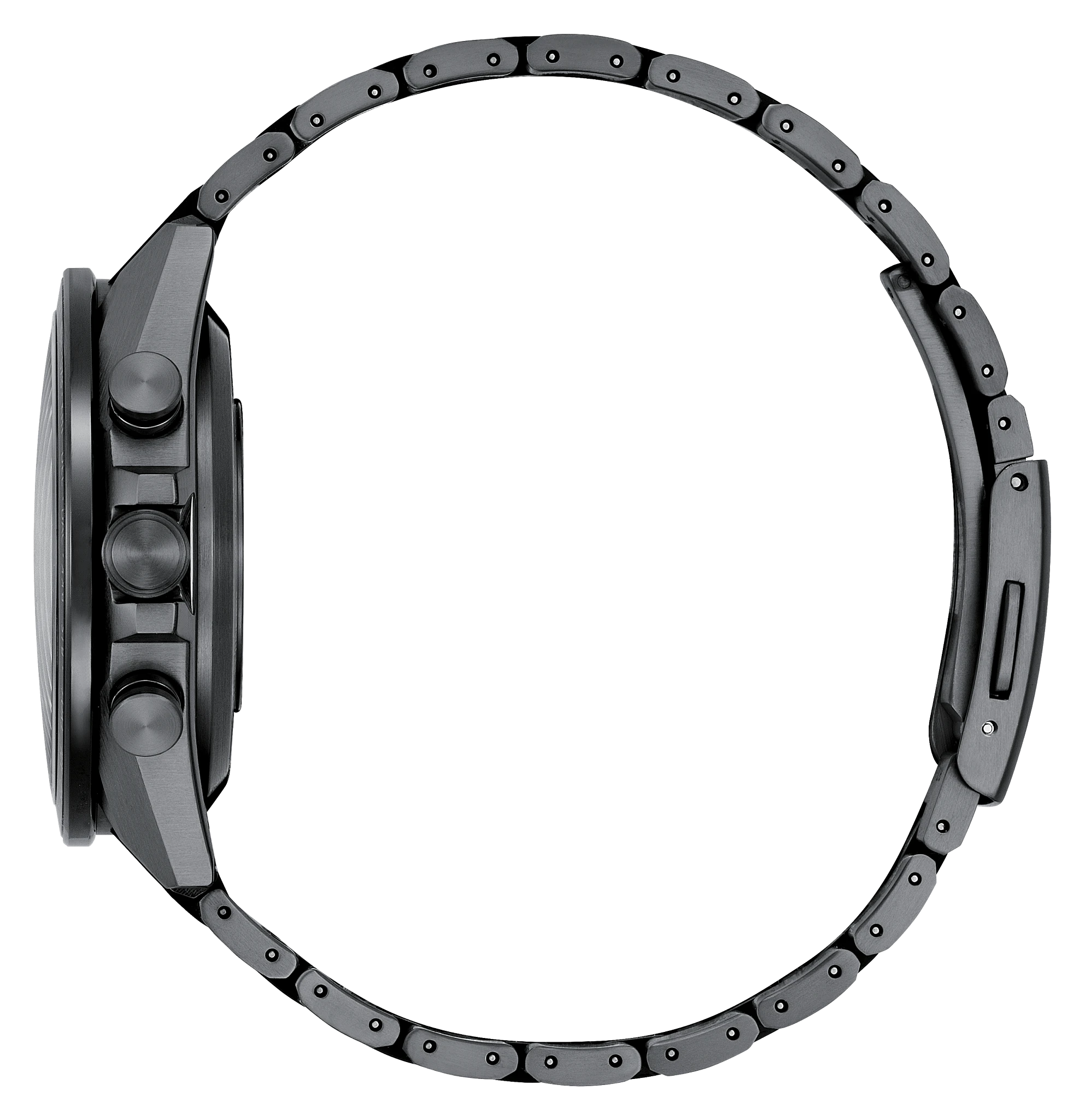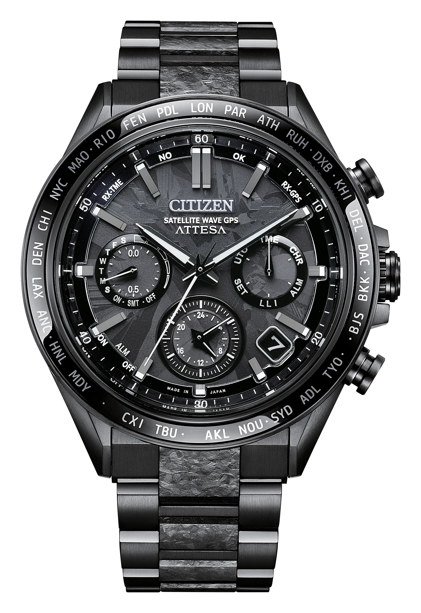 Powerful design and advanced technology drive the new luxury Attesa. Since… its 1987 launch, Attesa has incorporated titanium-processing know-how and features innovative, world-first technologies that will continue to shape the future. A 44.6mm Super Titanium™ case in gray DLC anchors the design, with sharp facets and fine finishing elevating the look alongside a unique triple-link bracelet featuring recrystallized titanium center links. A dual-spherical sapphire crystal adds high clarity to the chronograph’s dial details, where black and silver-tone accents upon another surface present a striking statement on the wrist. This limited-edition Attesa features the most advanced movement for Eco-Drive Satellite Wave GPS watches and delivers the world’s fastest time-only signal reception in as little as 3 seconds. Other advanced features include world time in 27 cities (40 time zones), a chronograph, dual time zones, (UTC) universal coordinated time display, a perpetual calendar, as well as daylight savings time, and power reserve and light level indicators. This distinctive chronograph utilizes Citizen’s Eco-Drive technology that’s sustainably powered by any light and never needs a battery. Water resistant up to 100 meters. Caliber F950. Limited to 2,300 unnumbered pieces worldwide.