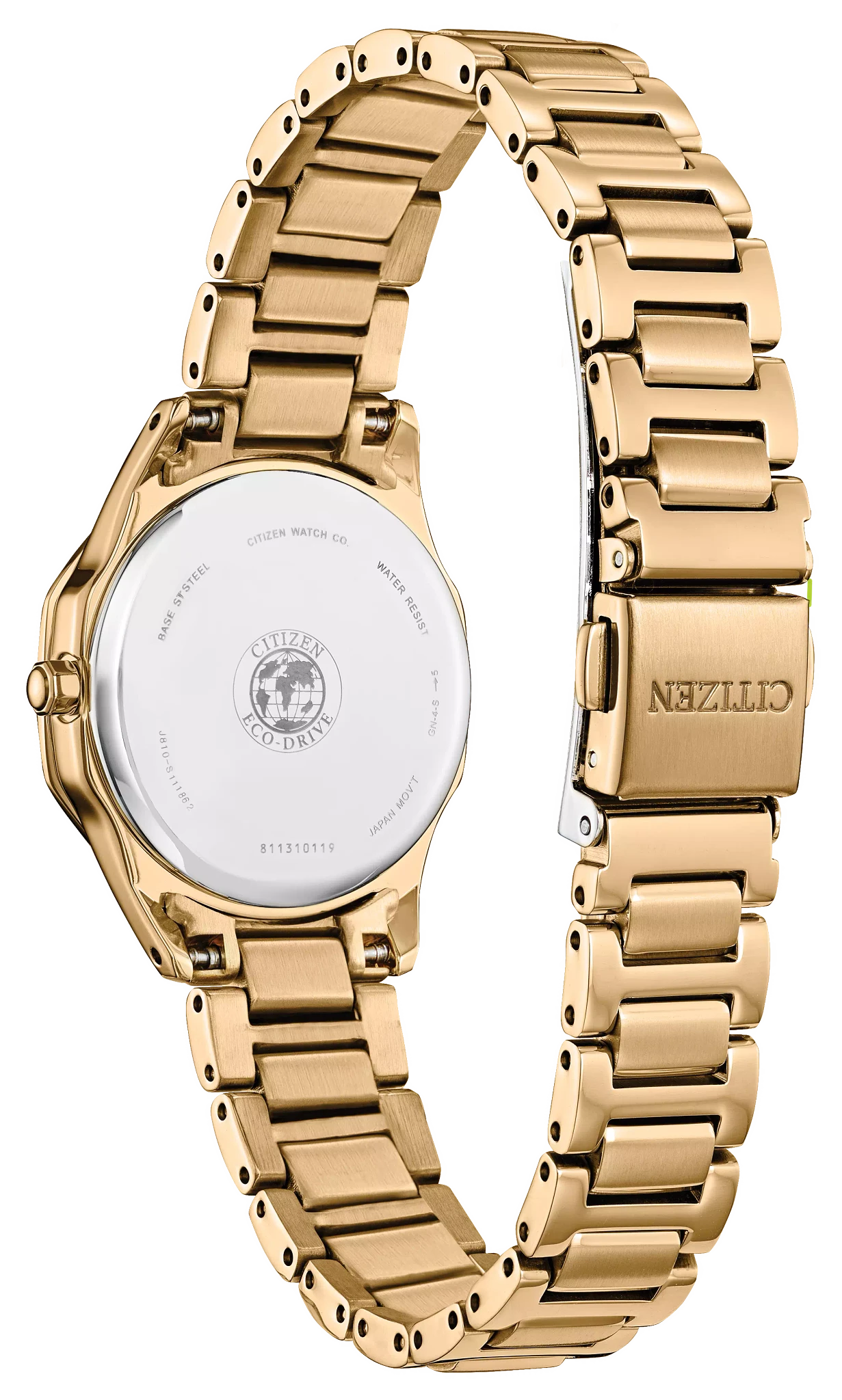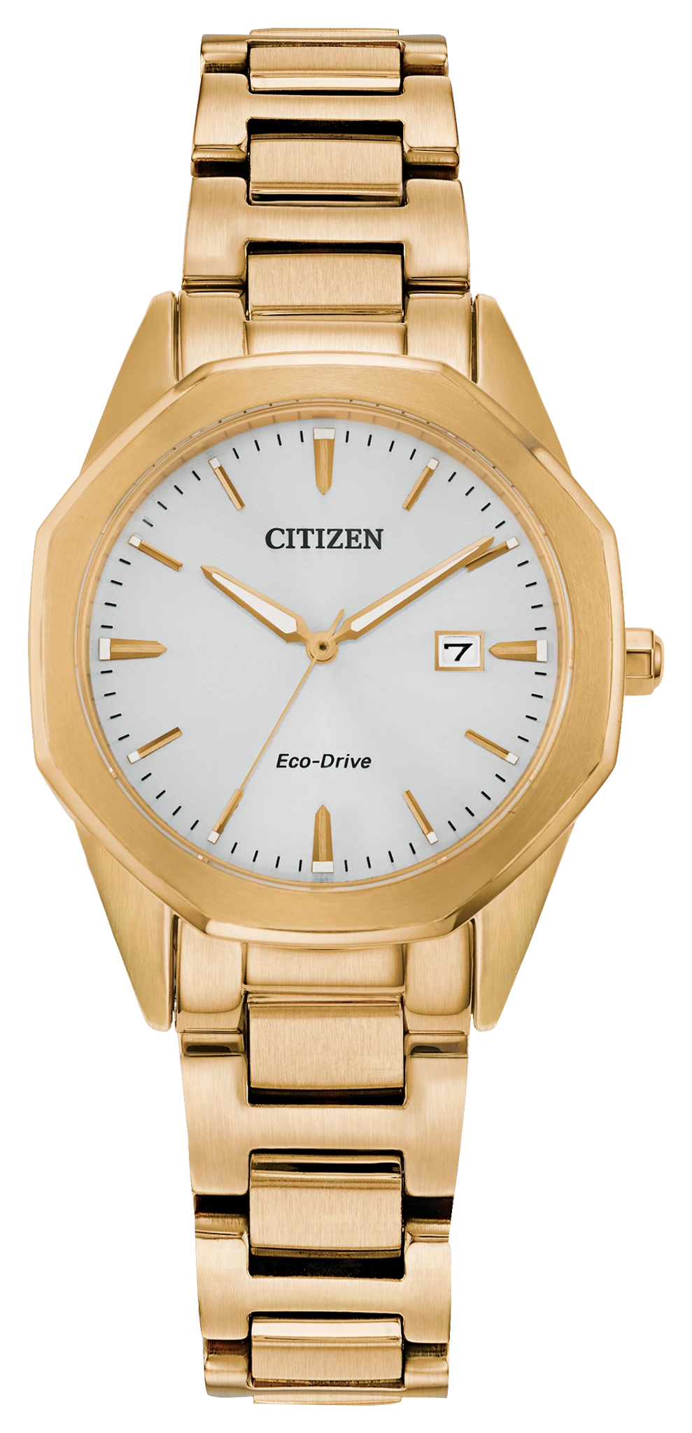 If subtle isn?t in your vocabulary, then the Corso from Citizen is the perfect… timepiece for you. With a gold-plated stainless steel band and case, and silver-white luminous dial, this watch makes a bold statement while perfectly accenting any outfit it?s paired with. This Eco-Drive powered watch will never fade into the background, and neither will you with it on your wrist.