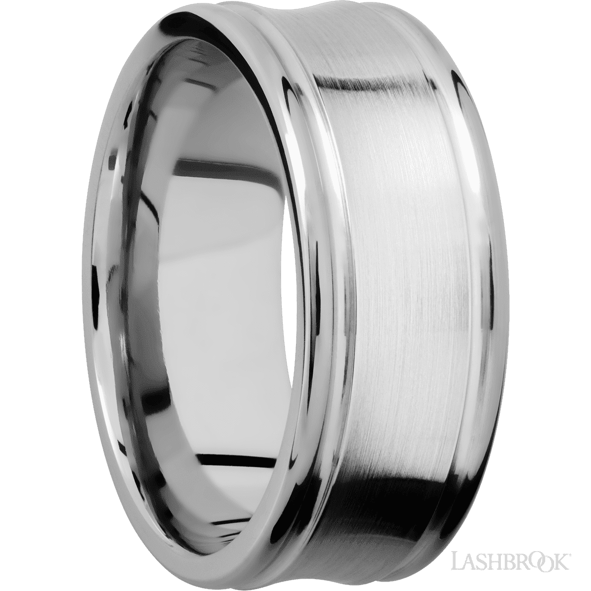 9 mm wide Concaved Center Round Edges 14K White Gold band.