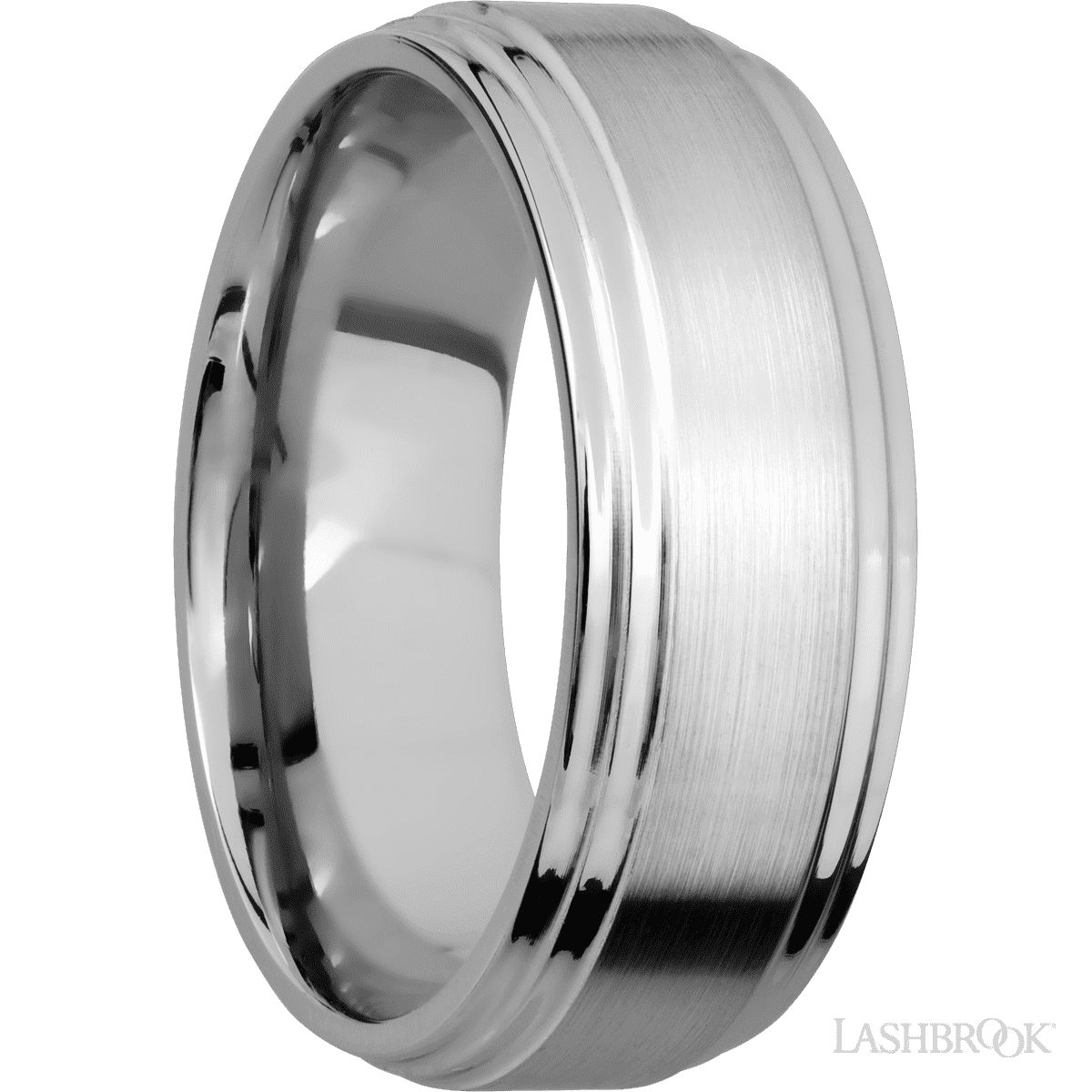 8 mm wide Flat Double Stepped Edges 14K White Gold band.