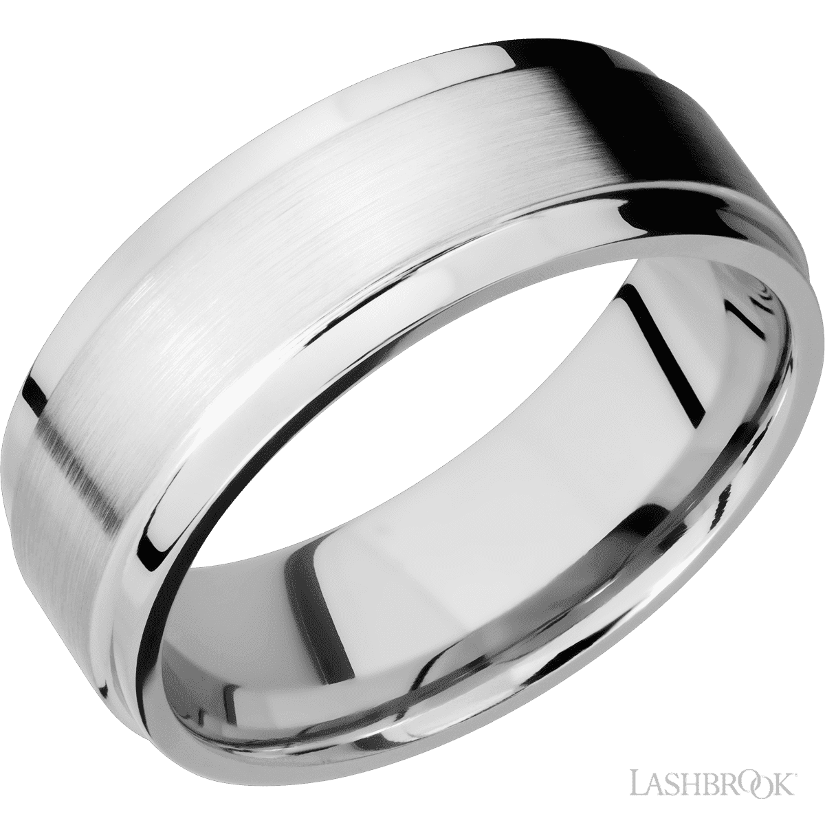 8 mm wide Flat Wide Grooved Edges 14K White Gold band.