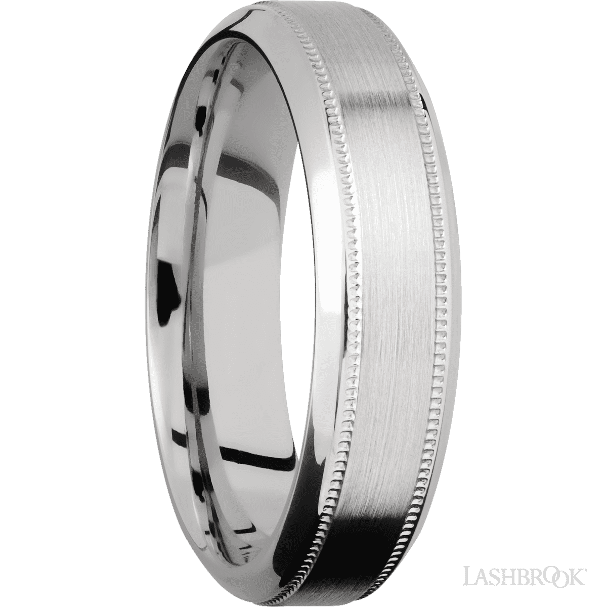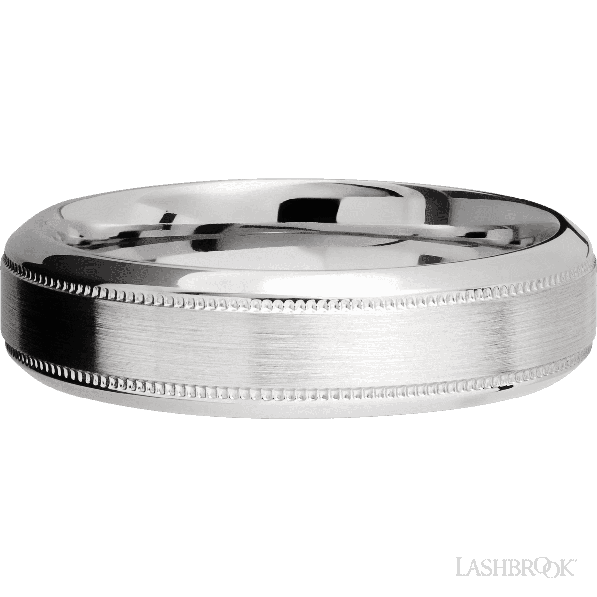 6 mm wide High Bevel Milgrain 14K White Gold band.