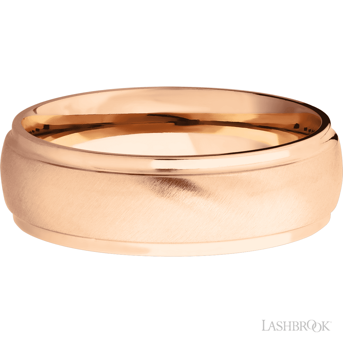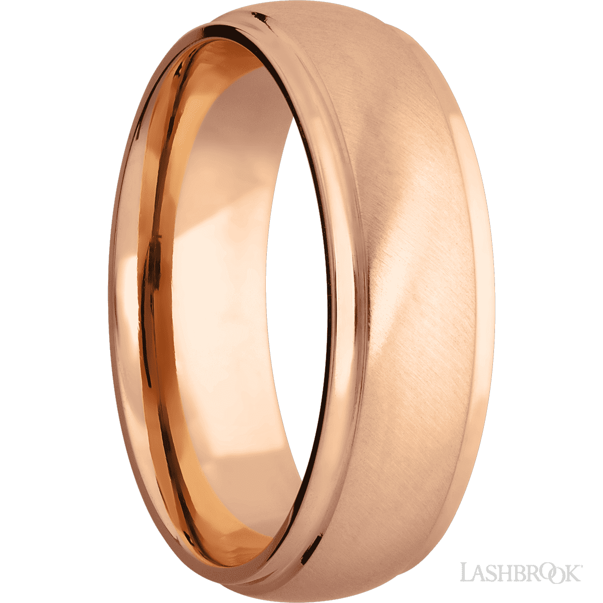 7 mm wide Domed Stepped Down Edges 14K Rose Gold band.