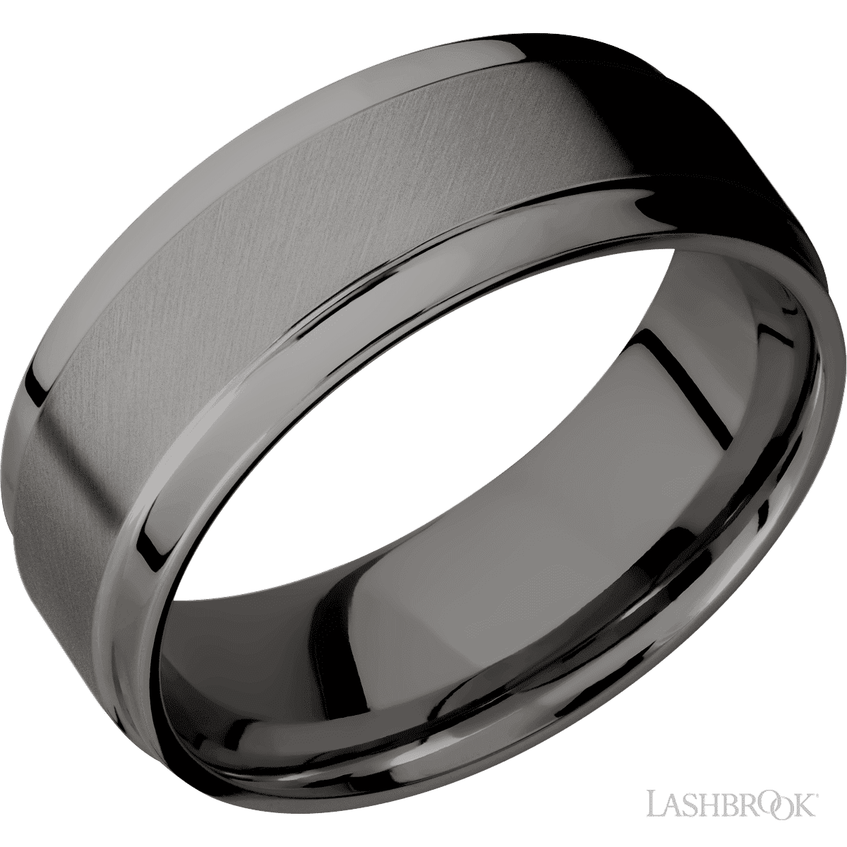 8 mm wide Flat Wide Grooved Edges Tantalum Noir band.