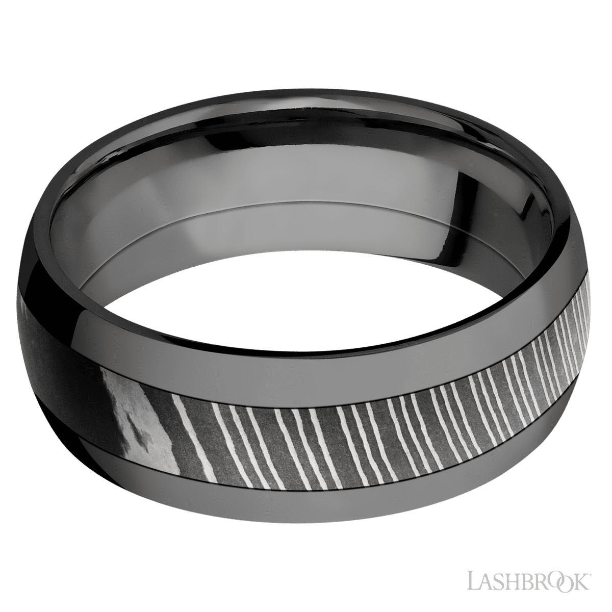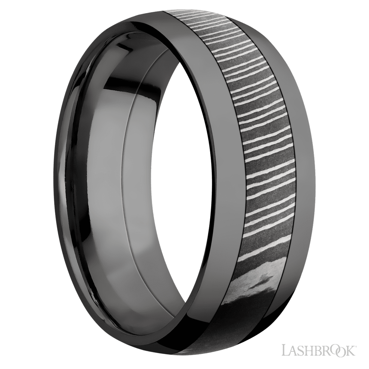 Lashbrook Zirconium with Polish Finish and Damascus Inlay Wedding Bands