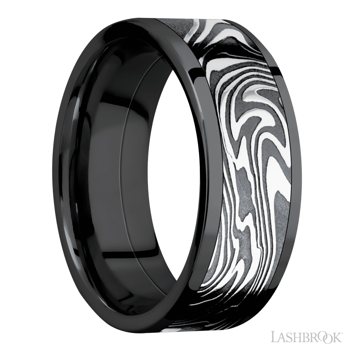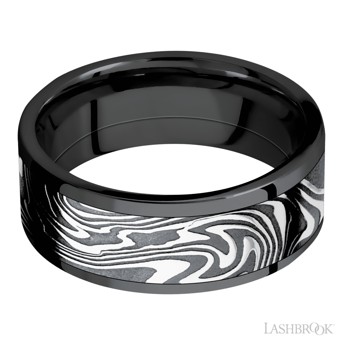 Lashbrook Zirconium with Polish Finish and Kinetic Inlay Wedding Bands