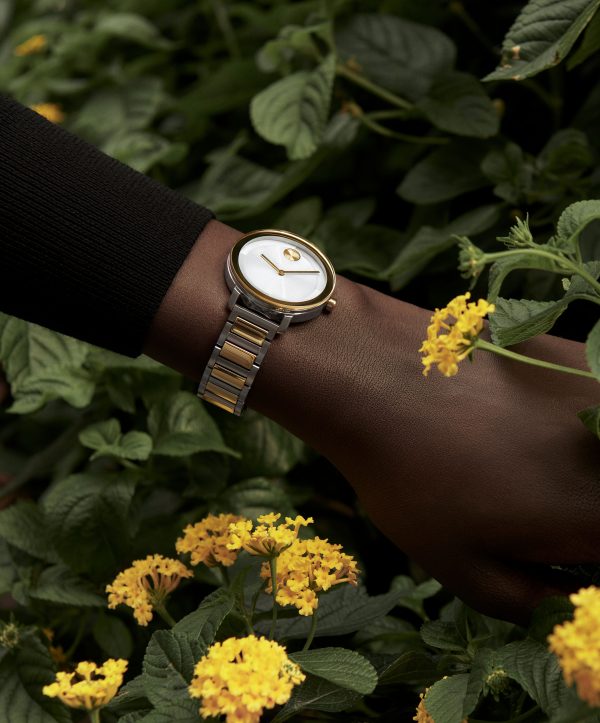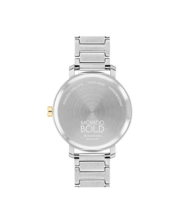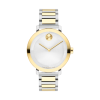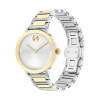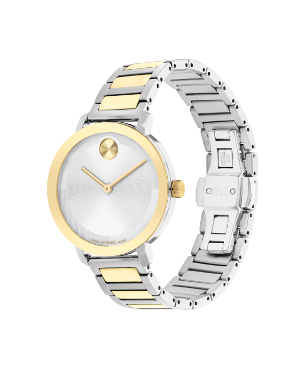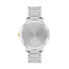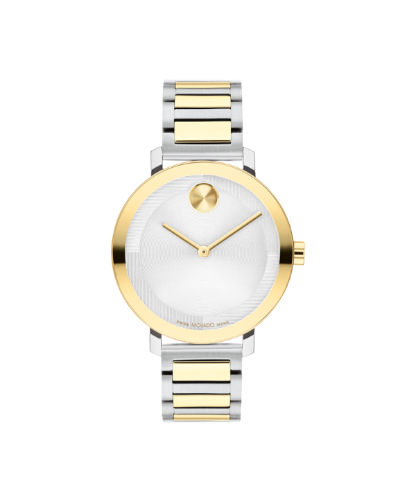 The evolution of modern design with a sharp look and elevated feel. This mix-metal timepiece is crafted from stainless steel and pale yellow goldtone ion-plated stainless steel. It features a statement-making 34mm case that houses a captivating micro-textured silvertone dial with a glossy lacquer overlay, slim goldtone hands, and our iconic dot motif at 12 oメclock.