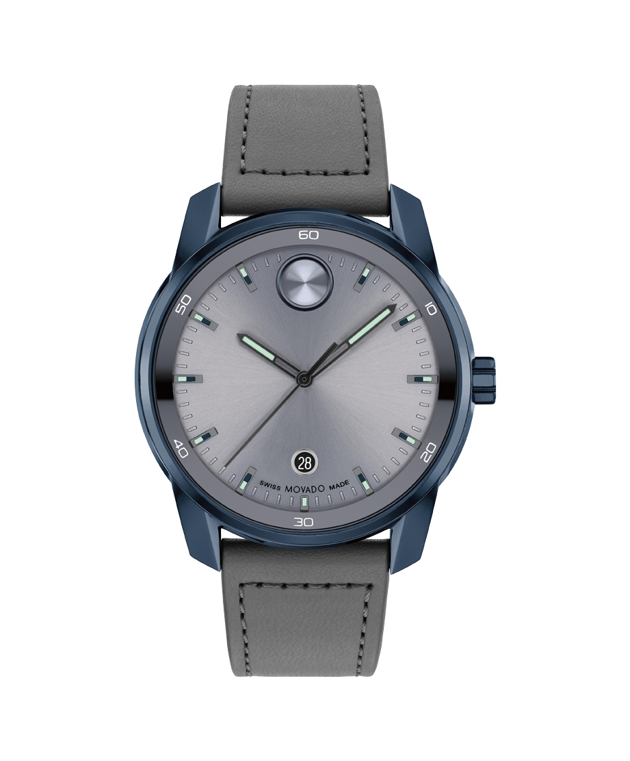 The BOLD Verso is defined by a bold, sport-inspired case and sophisticated detailing. This 42mm watch features a military grey dial, Swiss Super-LumiNova® accents, and our signature dot at 12 o’clock.