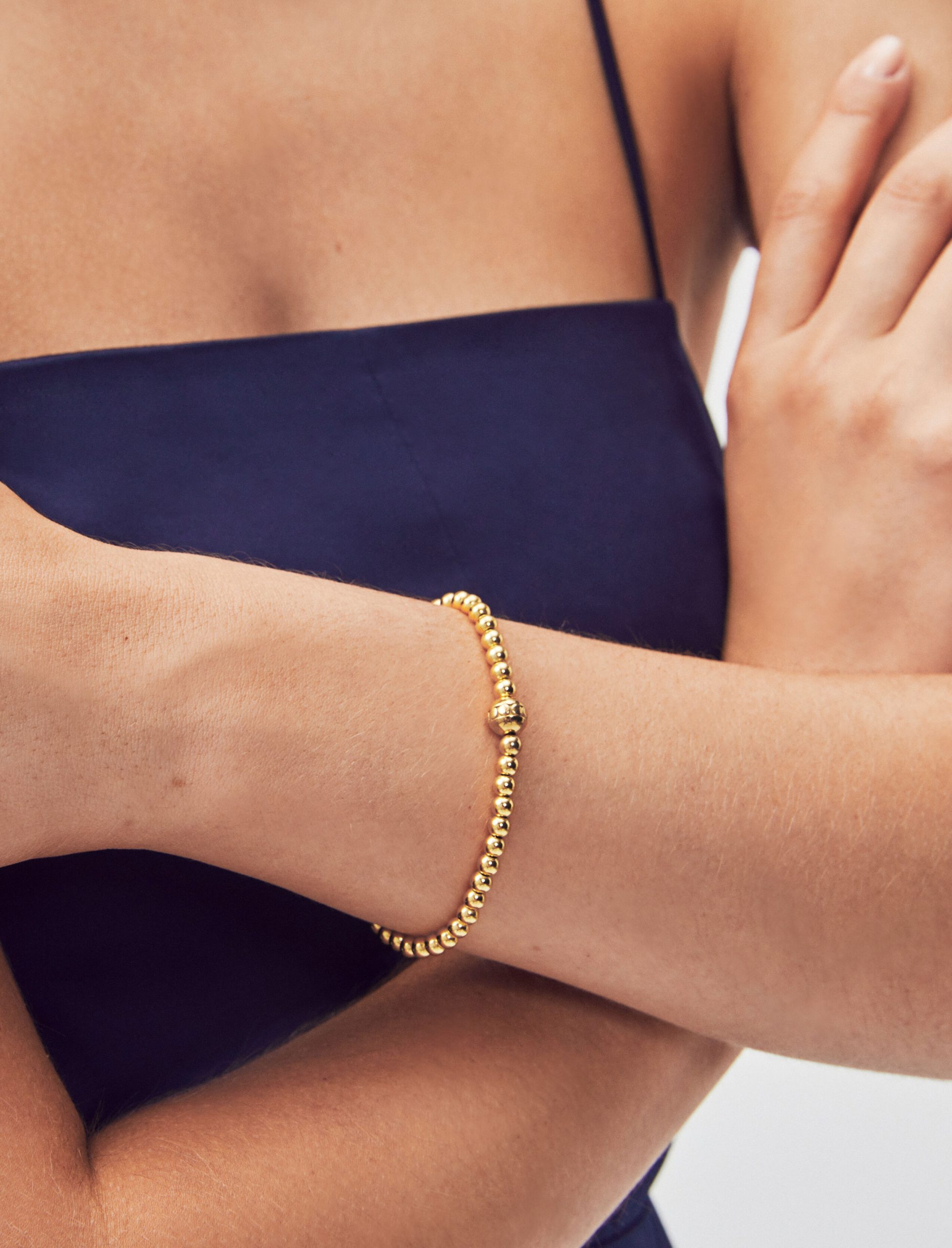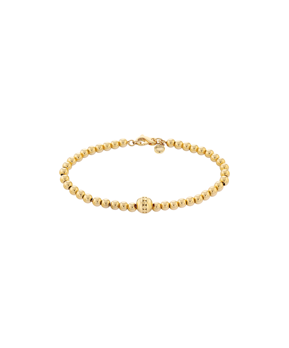 Elevate any look with this delicate beaded bracelet. Crafted from petite 4mm gold vermeilラ14k yellow gold-plated sterling silverラbeads, this timeless design is finished with an iconic dot tag and an infinity lobster clasp closure. The inside diameter measures 6.