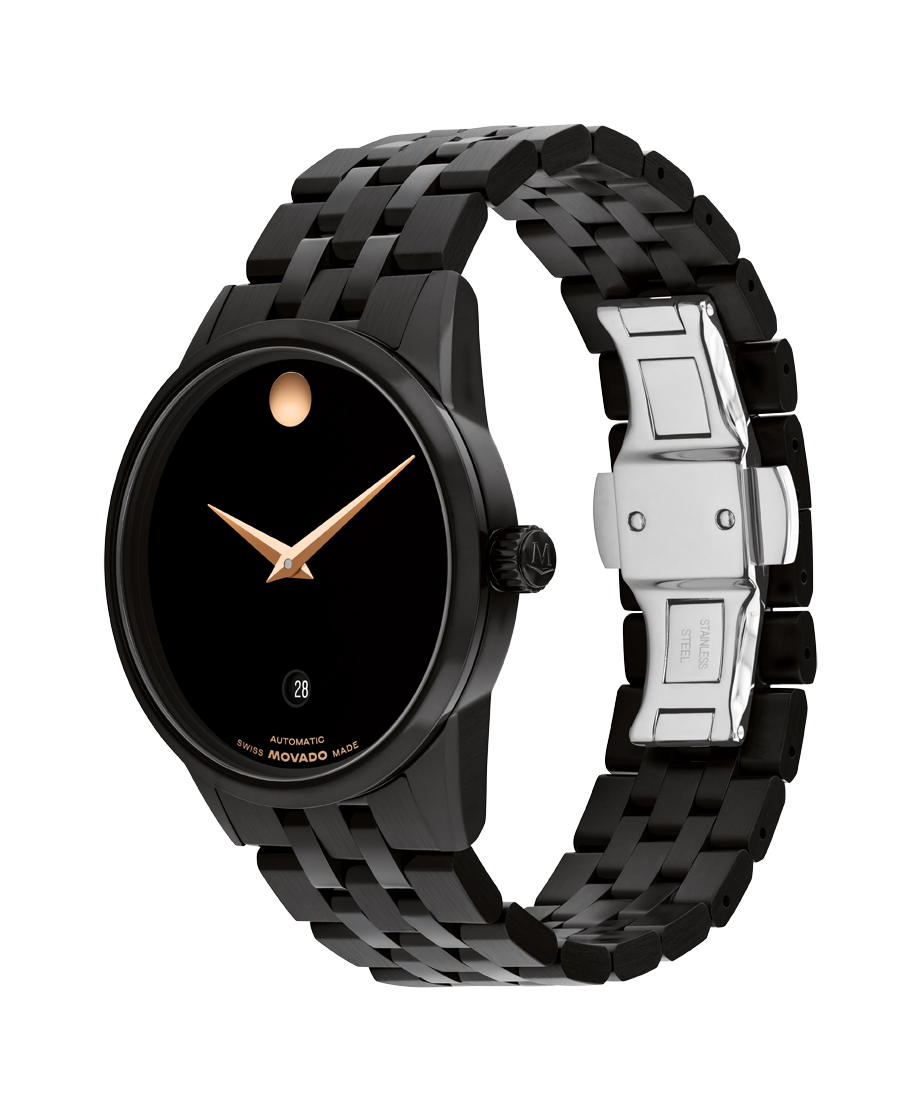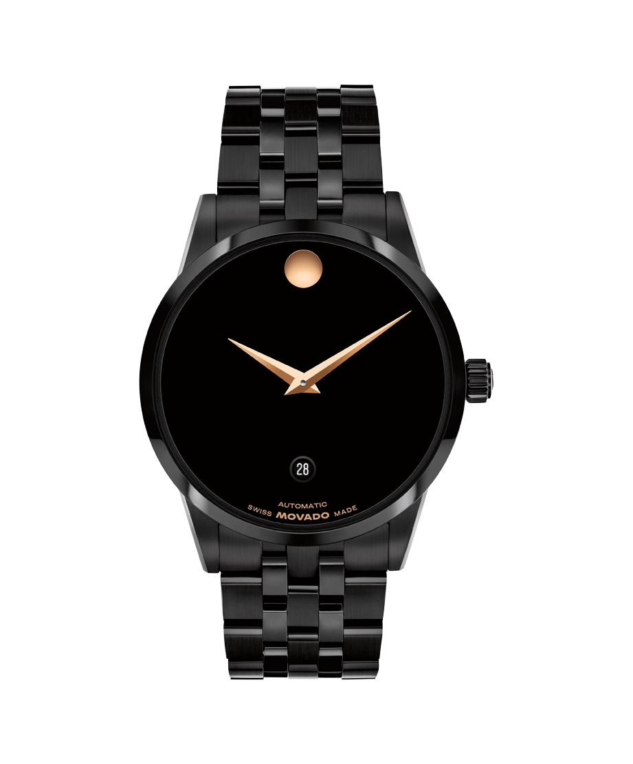 The Museum Classic is the purest interpretation of Movado’s Museum Dialラan icon of modern design seen in art institutions around the world. A Swiss made self-winding movement drives this watch, powered by the motion of your wrist. This 40mm two-hand watch features a black lacquer dial, rose gold tone dauphine hands, and our signature dot at 12 o’clock.
