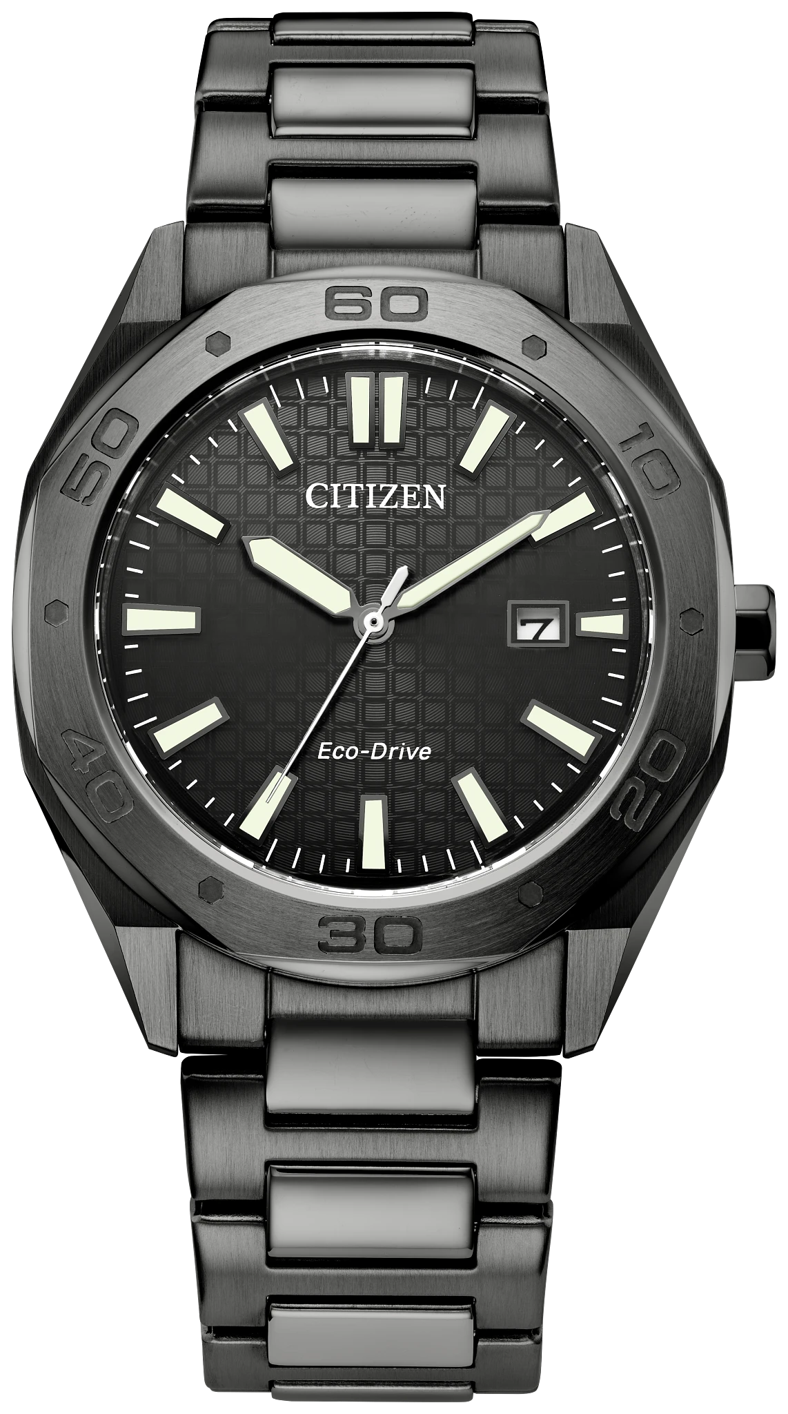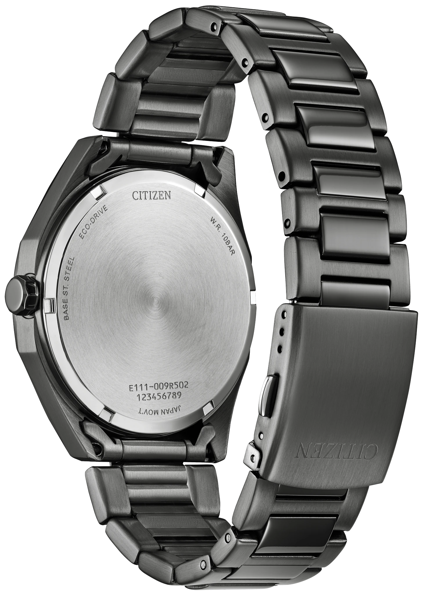 Confidently go from work to play with the new Odyn. Featuring a gray-tone… stainless steel case measuring 41mm in diameter, the sports-focused timepiece makes use of sharp lines and monochromatic styling to make a statement on the wrist. A faceted 60-minute bezel, H-link bracelet, and 100m water resistance ensure all-purpose wear. On the dial, a textured gray display is presented, with applied indices in bright white alongside a 3 o’clock date window providing high legibility and daily utility. Featuring Citizen’s Eco-Drive technology, sustainably powered by any light and never needs a battery. Caliber number E111.