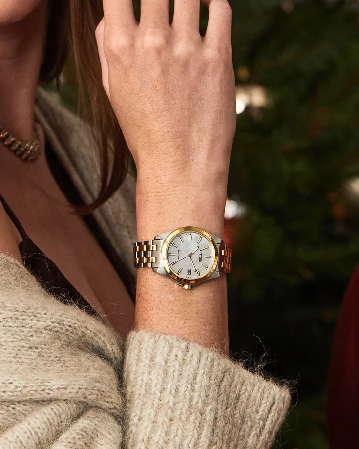 This classic timepiece from Citizen is a popular women?s watch that will never… go out of style. It features a two-tone stainless steel bracelet-style watch band, paired with a mother-of-pearl three-hand dial to make a watch that will look great for any occasion. In addition to showing the current date, the watch is sustainably powered by light with the exclusive Citizen Eco-Drive technology, so you?ll never have to worry about missing time. For every woman searching for an every-day timepiece, this watch is the perfect accessory to add to the wardrobe.