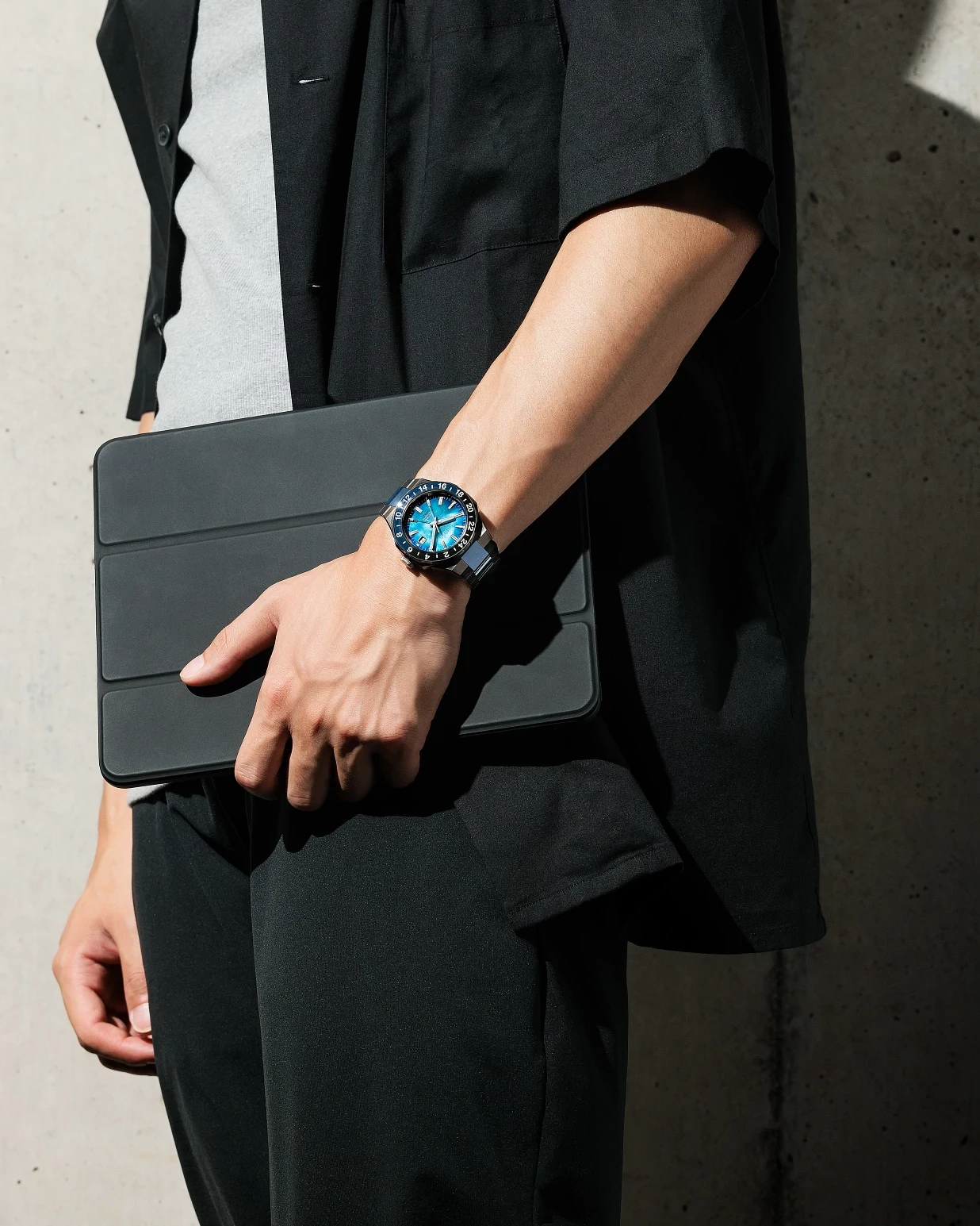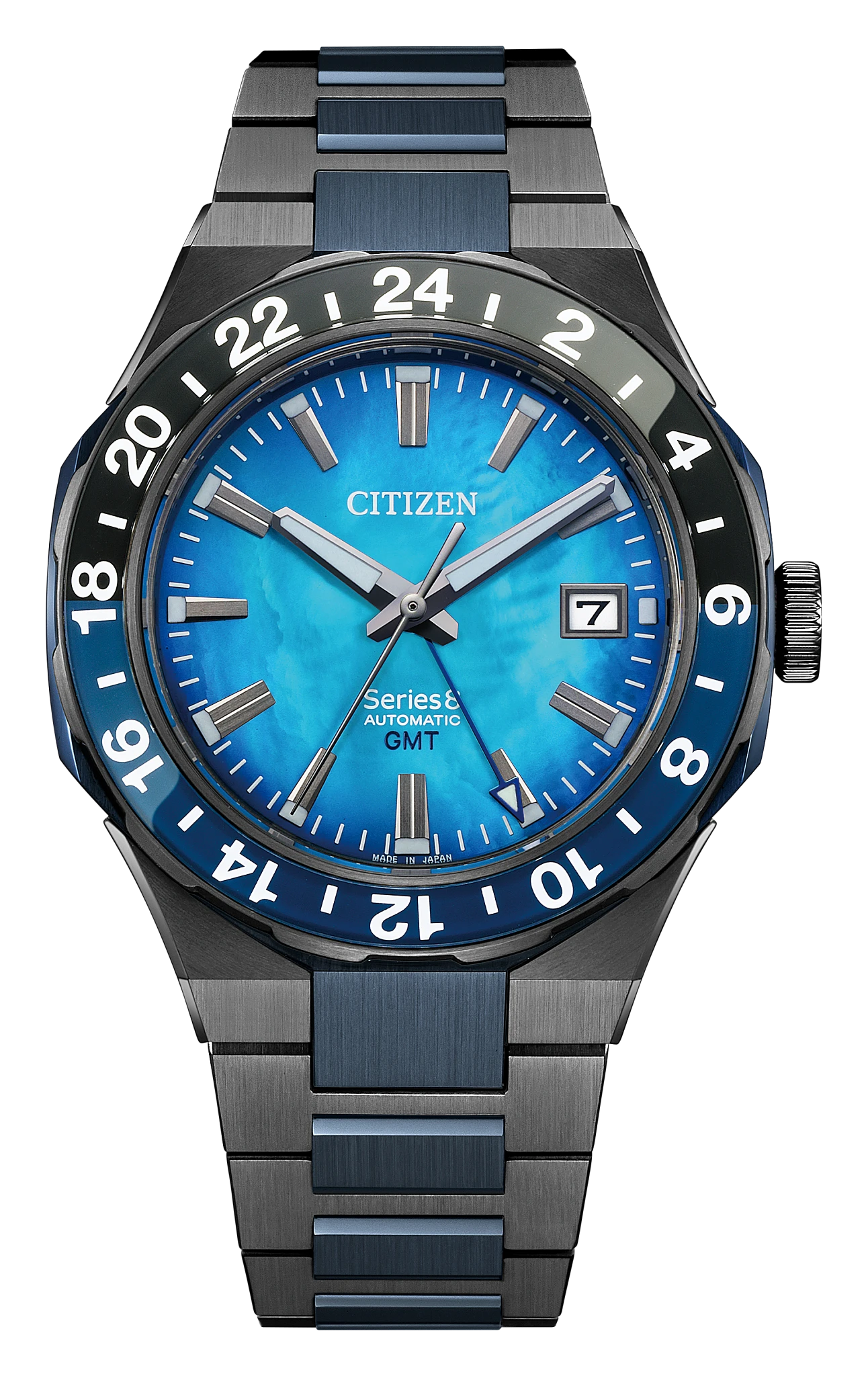 Functional and practical, modern and sporty –– the new Citizen Series8 880 GMT… is the perfect companion for daily wear to spirited travel, and everything in between. Featuring a black and blue two-tone stainless steel case with a bi-directional bezel, the 41mm model highlights the best of Citizen’s creative watchmaking and finishing techniques. Water resistant to 100m and able to withstand magnetic fields up to 16,000 A/m, the watch is powered by the high-performance Caliber 9054, with the mechanism allowing for local and travel time displays alongside an independently set hour hand. The automatic GMT movement is visible through a sapphire exhibition case back and is capable of maintaining an accuracy of +20 / -10 seconds per day with a frequency of 28,800 v/h and a power reserve of 50 hours. A tapered, integrated stainless steel H-link bracelet secures the watch to the wrist, with its two-tone design following the aesthetic of the case via the use of polished and brushed facets. Beneath a sapphire crystal, the watch’s blue mother-of-pearl dial features applied indices and lume-filled hands, each working together to offer incredible legibility alongside a utility-driven 3 o’clock date window; a grey-tipped hand assists in keeping track of multiple time zones. Limited to 1,000 unnumbered pieces worldwide.