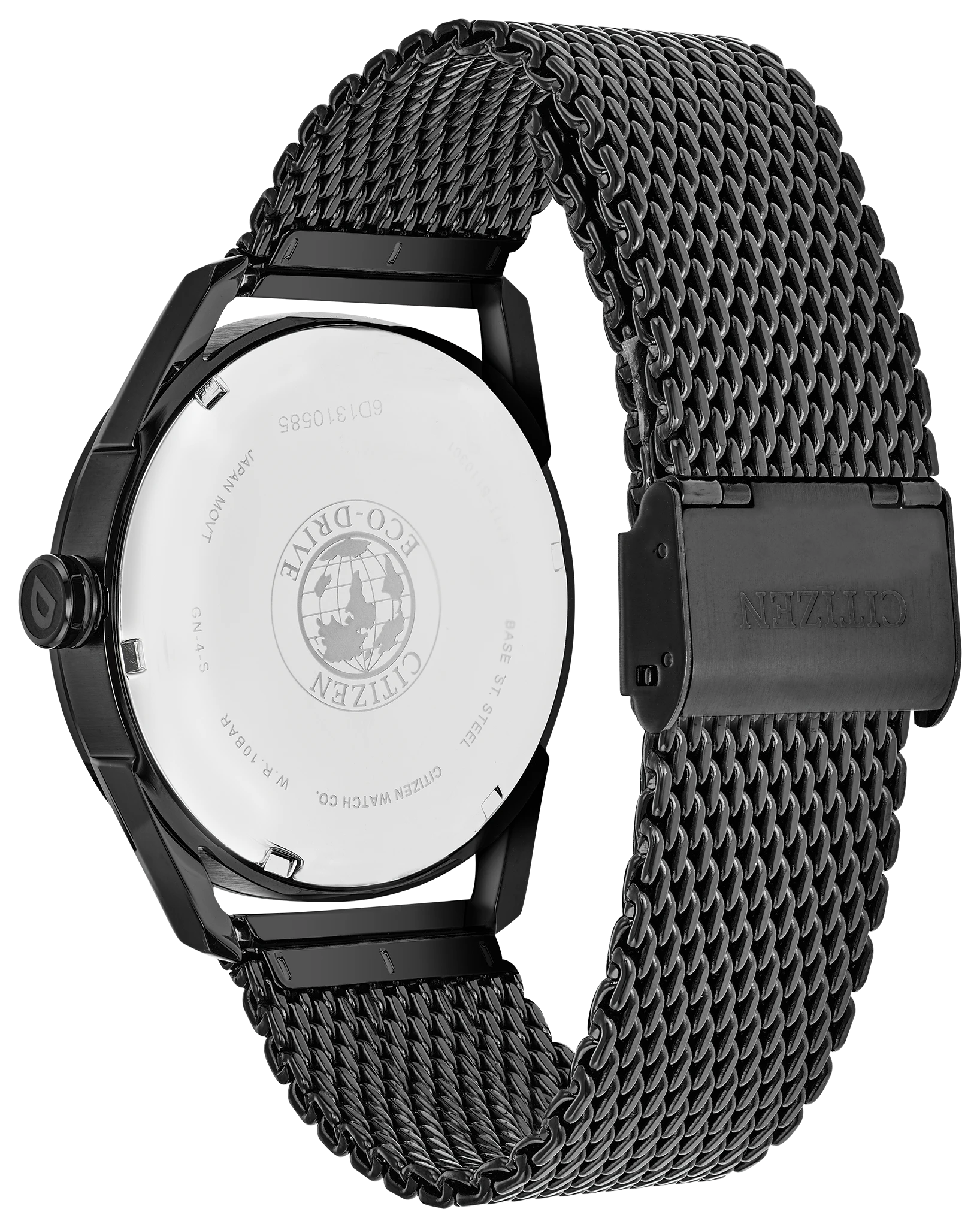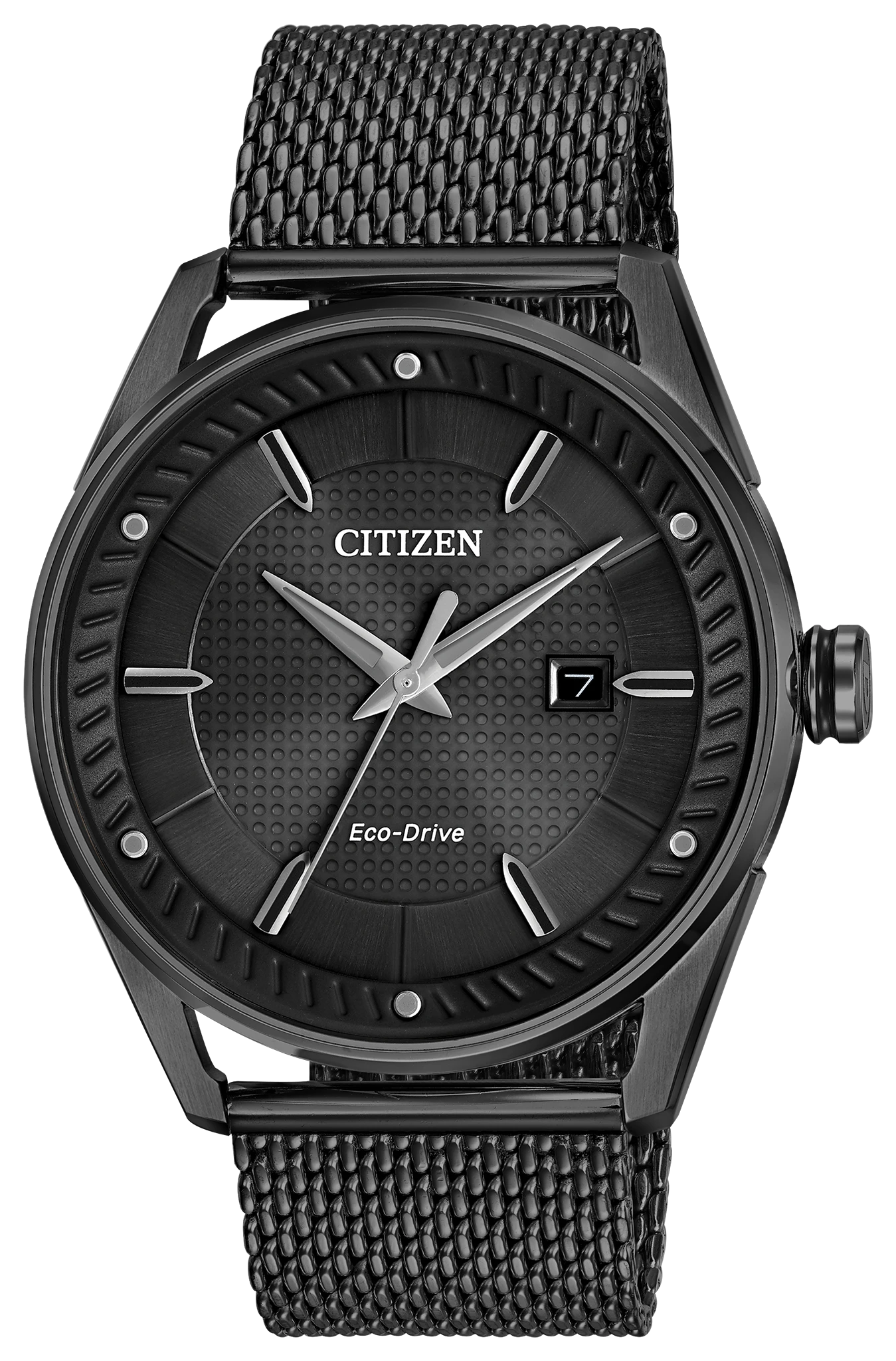 A clean, simple design and uncluttered details; this brand new intriguing… timepiece will keep you going for years to come. Powered by light, with Eco-Drive technology, this maintenance free timepiece will never need a battery change. Featured here in a black-tone stainless steel case, black-tone Milanese mesh bracelet, black dial and black accents. Caliber number E111.