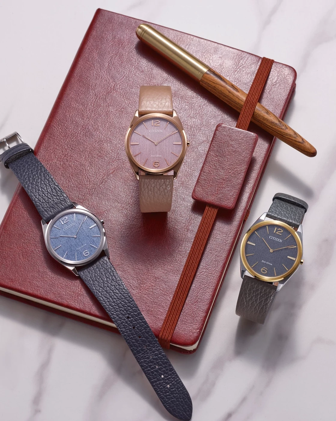 Classic lines and a simple silhouette define the newest addition to the… Classic collection. This all-purpose dress watch features a versatile silver-tone stainless steel 38.4mm case, a two-hand blue dial featuring an entrancing metallic powder aesthetic with silver-tone hands and markers, and is secured to the wrist via a grained blue leather strap with buckle closure. The Citizen Suratto collection features a notably defining thin case at 4.71mm, and is sustainably powered by any light with Eco-Drive technology –which never needs a battery. Water resistant to 50 meters. Caliber G872.