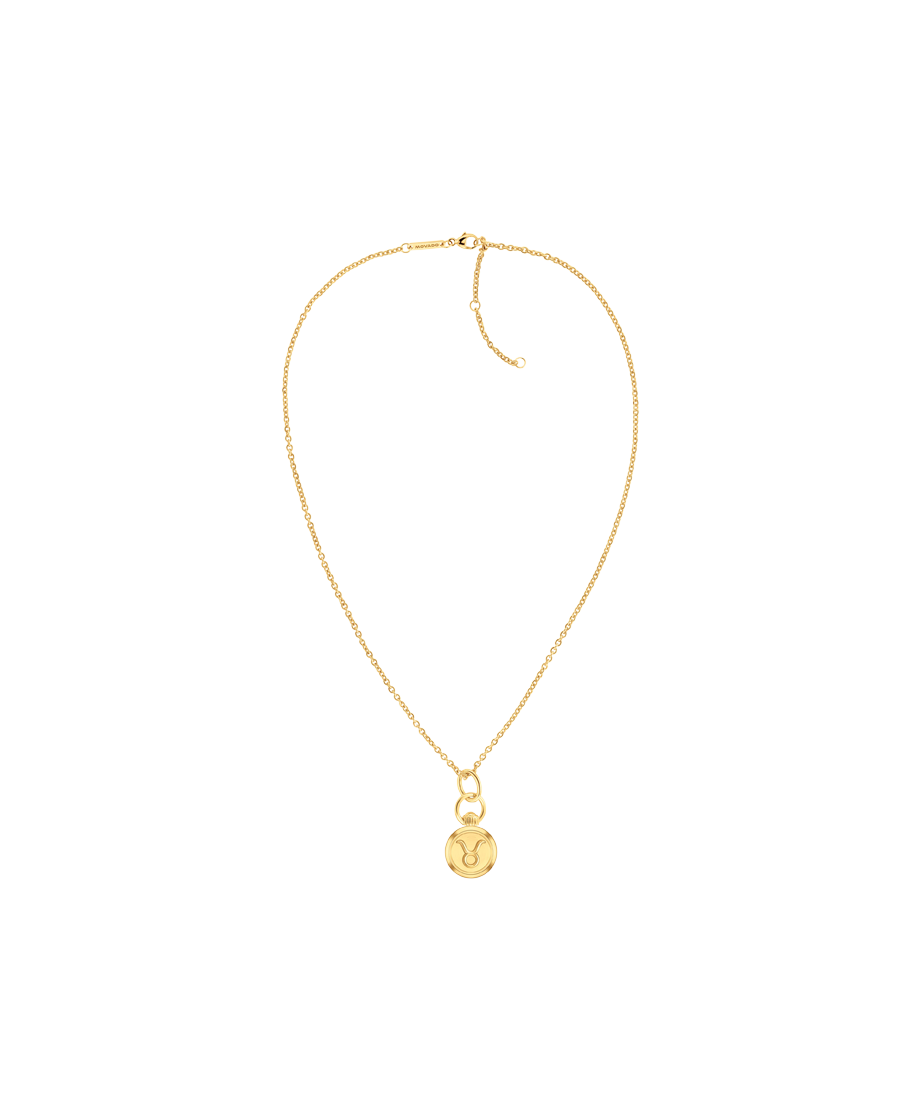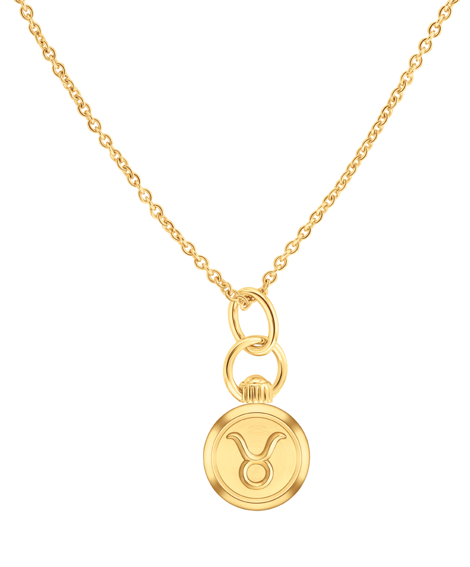 Modern elegance inspired by the beauty of the cosmos. This vermeilラ14k yellow gold-plated sterling silverラpendant necklace is emblazoned with the Taurus symbol. Adjustable length of 16″, 17″ or 18″. Lobster clasp closure.