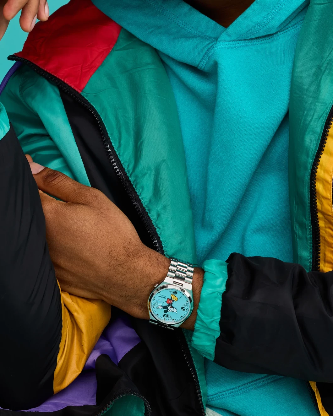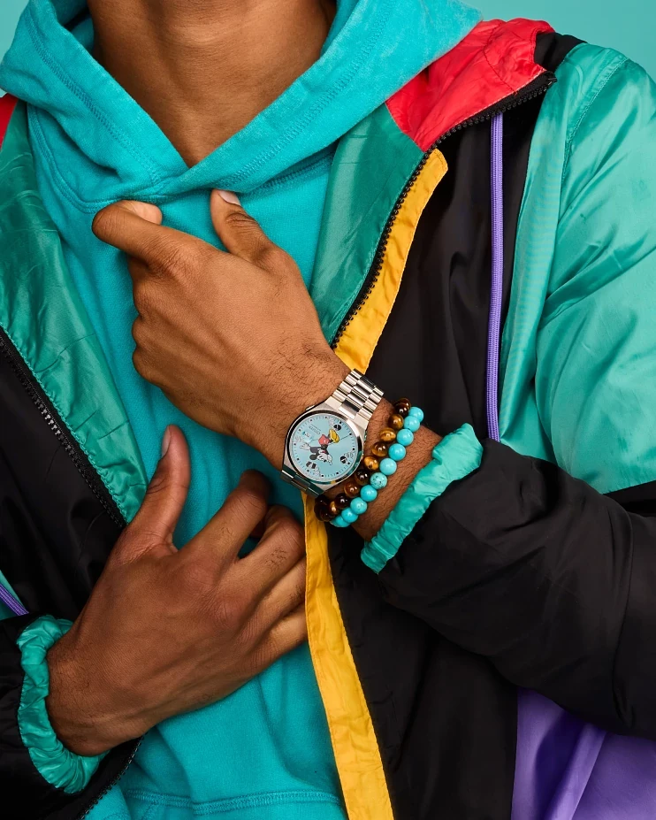 Spring into action with the new TSUYOSA Mickey Mouse, an automatic sports… watch. Our TSUYOSA collection is characterized by colorful dials, and in this new style we see jumping-for-joy Mickey Mouse in the center of a sky blue sunray dial with tooled hands while three tilted numeric markers suggest his energy and bouncy motion. The substantial faceted silver-tone stainless steel 40mm case and brushed and polished integrated bracelet make an elegant statement, and the open case back reveals the 21-jewel movement. Designed for both Disney devotees and fans of fine craftsmanship, this fan-favorite timepiece is built to last.