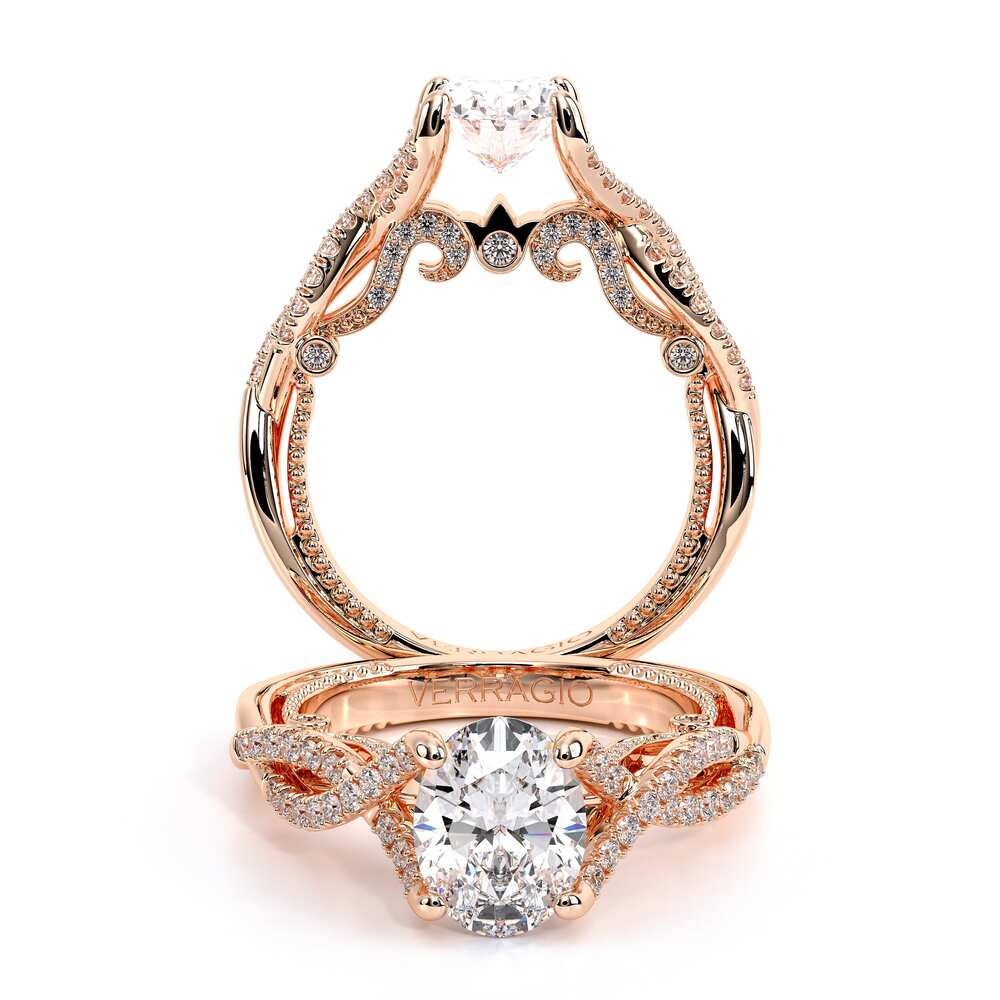 INSIGNIA-7060 Oval engagement ring. Featuring round brilliant-cut pave set diamonds on a twisted band. Distinctively paired with Verragio’s handcrafted signature beading.