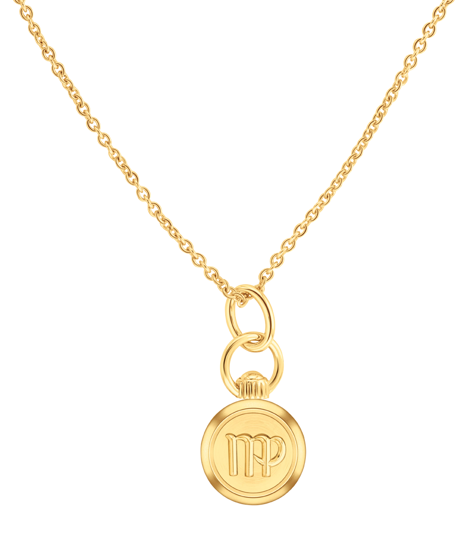 Modern elegance inspired by the beauty of the cosmos. This vermeilラ14k yellow gold-plated sterling silverラpendant necklace is emblazoned with the Virgo symbol. Adjustable length of 16″, 17″ or 18″. Lobster clasp closure.